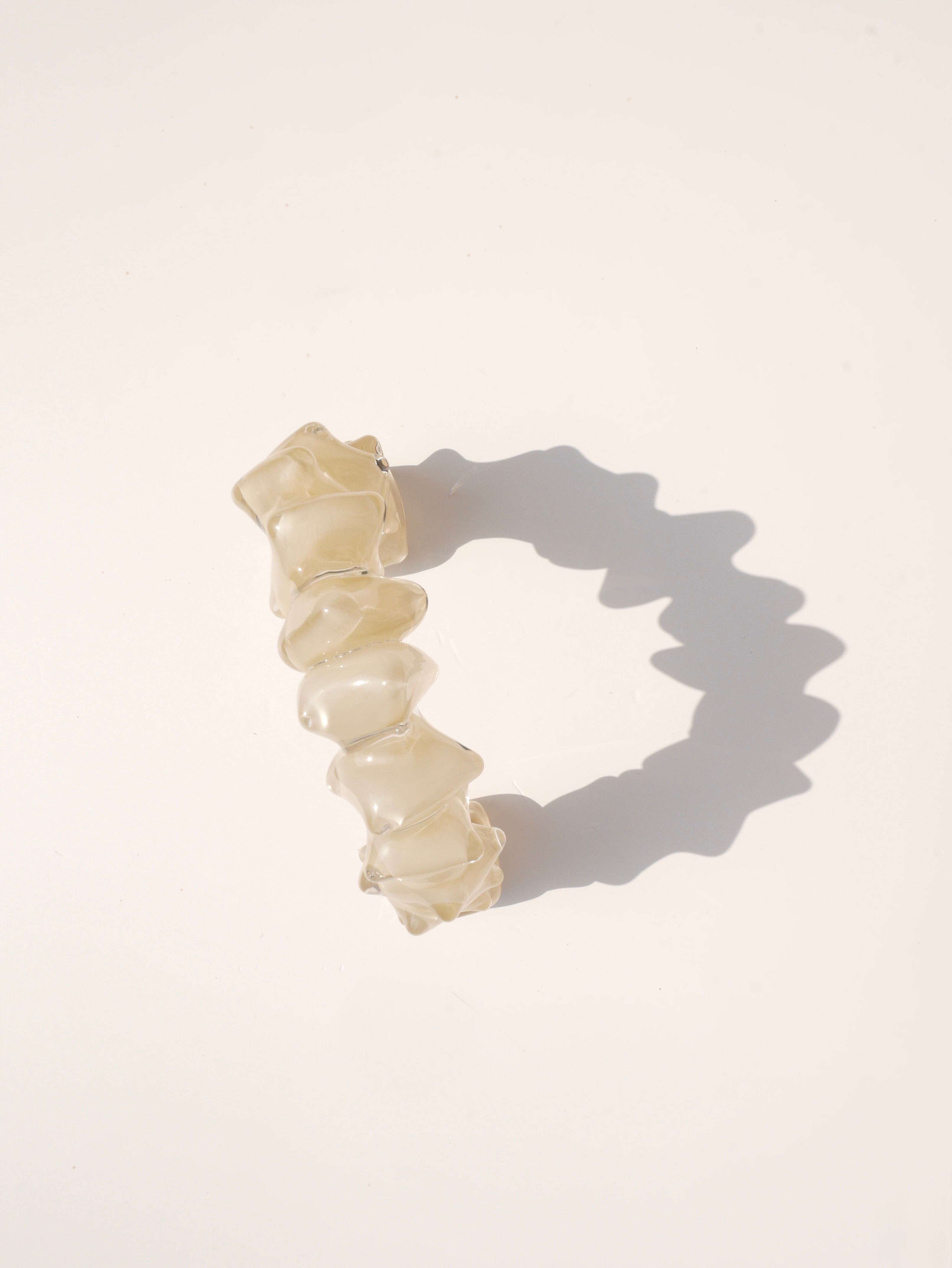 淡いクリームホワイト色のガラスが、透明の縁取りと混ざり合い、