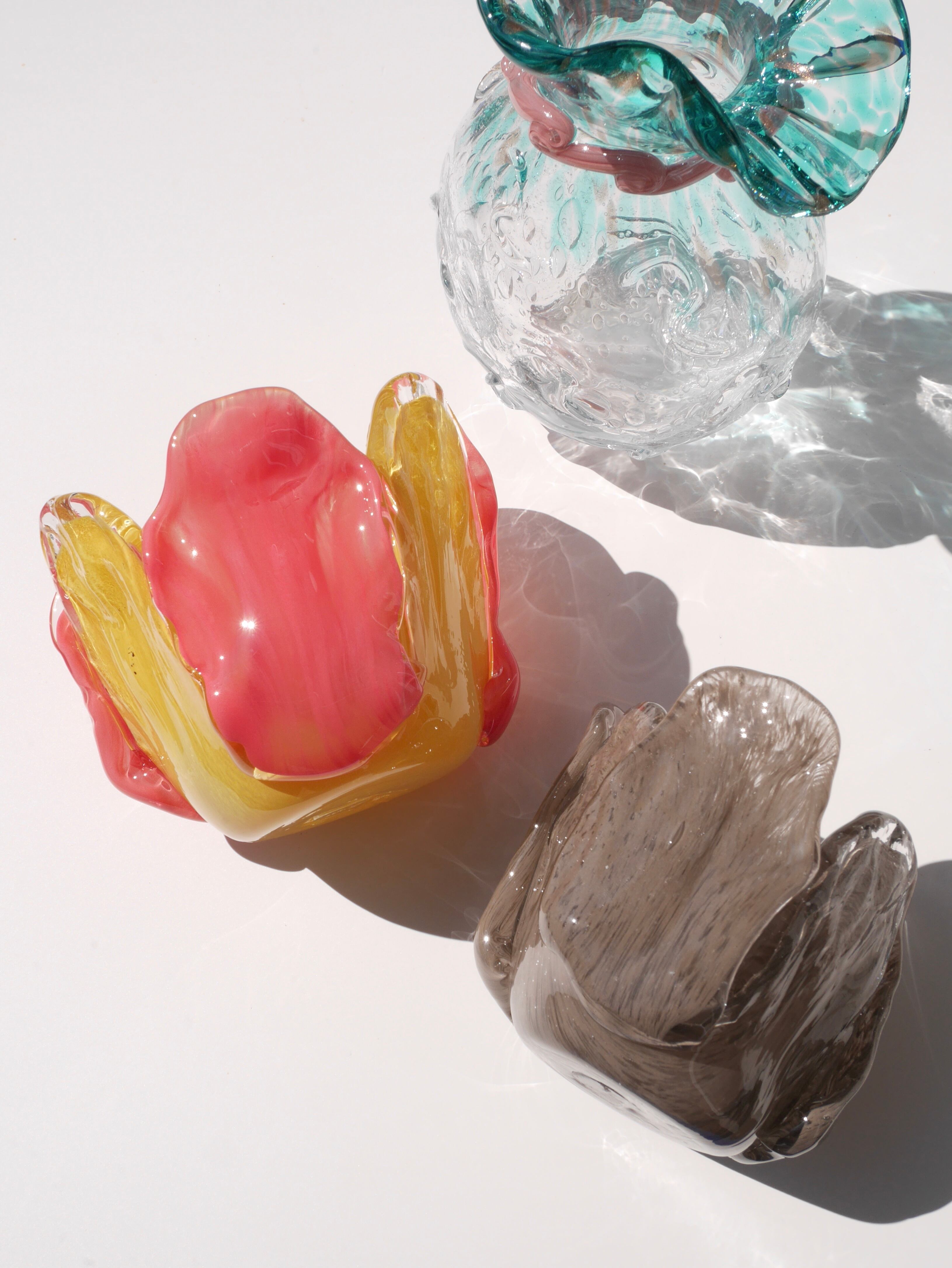 本物のお花のように広がる花びらモチーフのガラスオブジェ