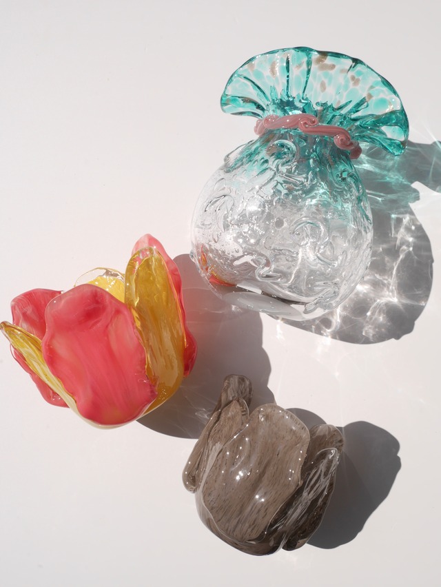 本物のお花のように広がる花びらモチーフのガラスオブジェ