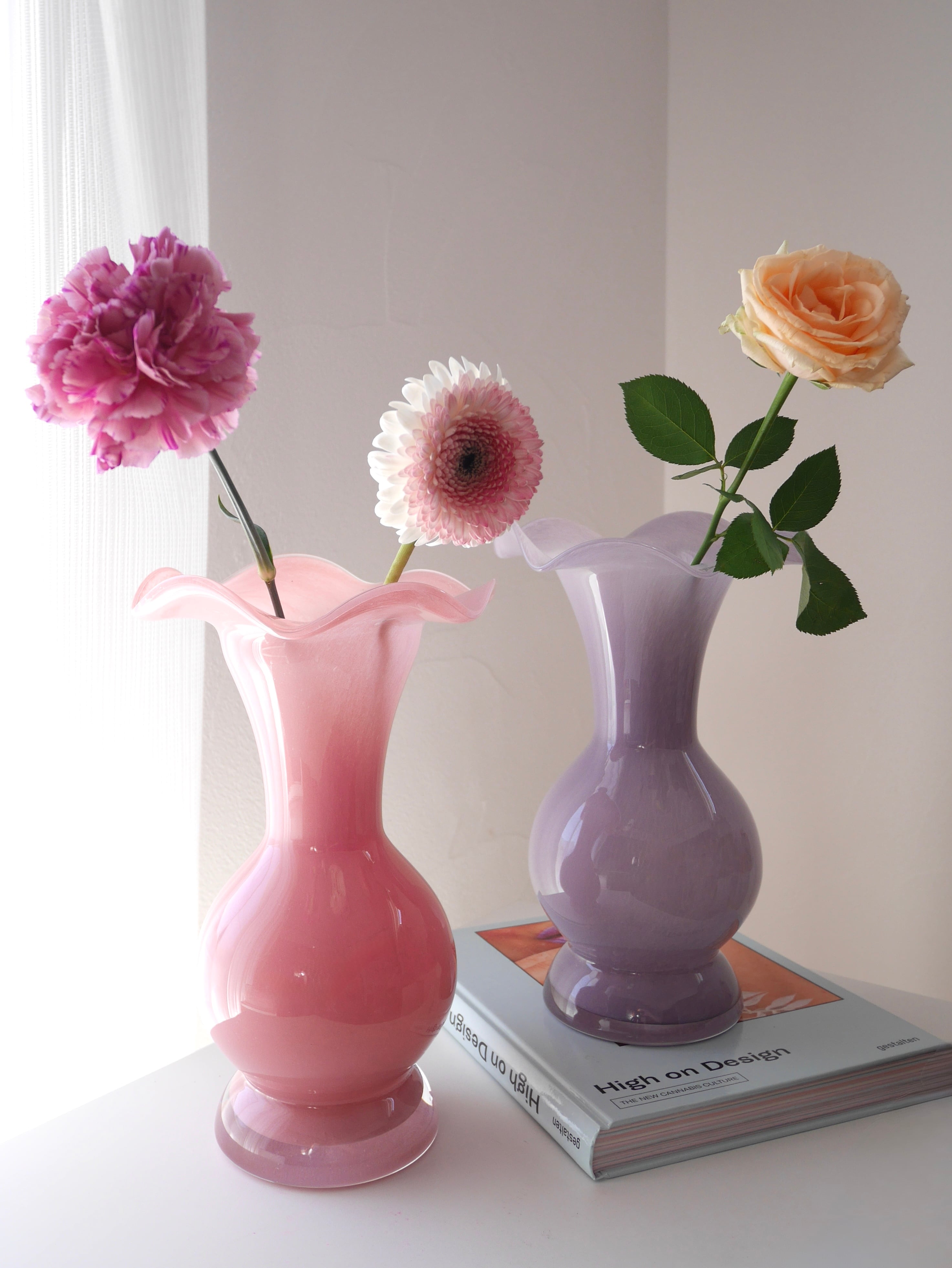 高さがあり存在感抜群で、一輪の花も花束をバサッと飾っても素敵♡