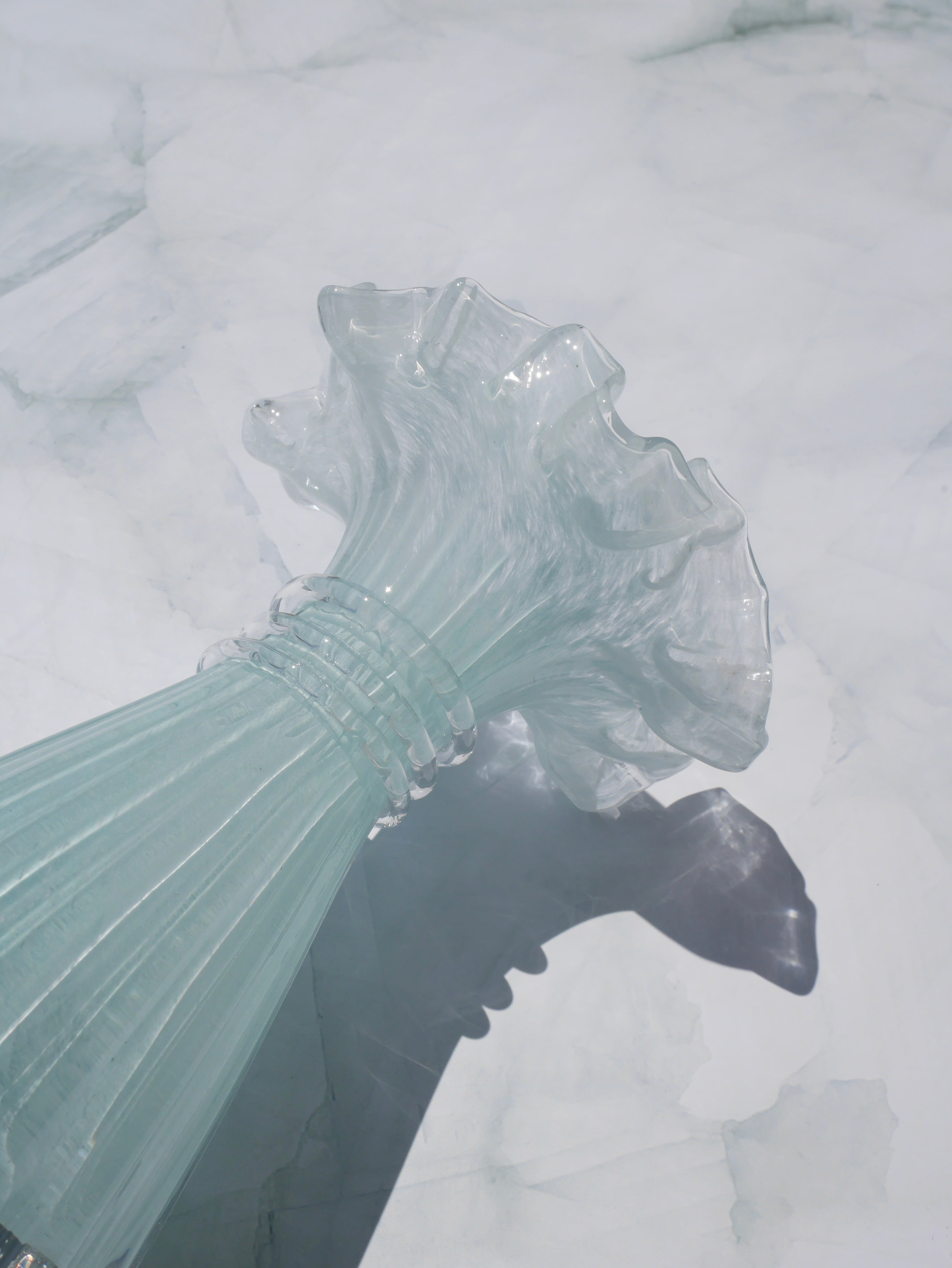 繊細なフリルの装飾と、きゅっとガラスの紐で結ばれたくびれたデザインが魅力的!