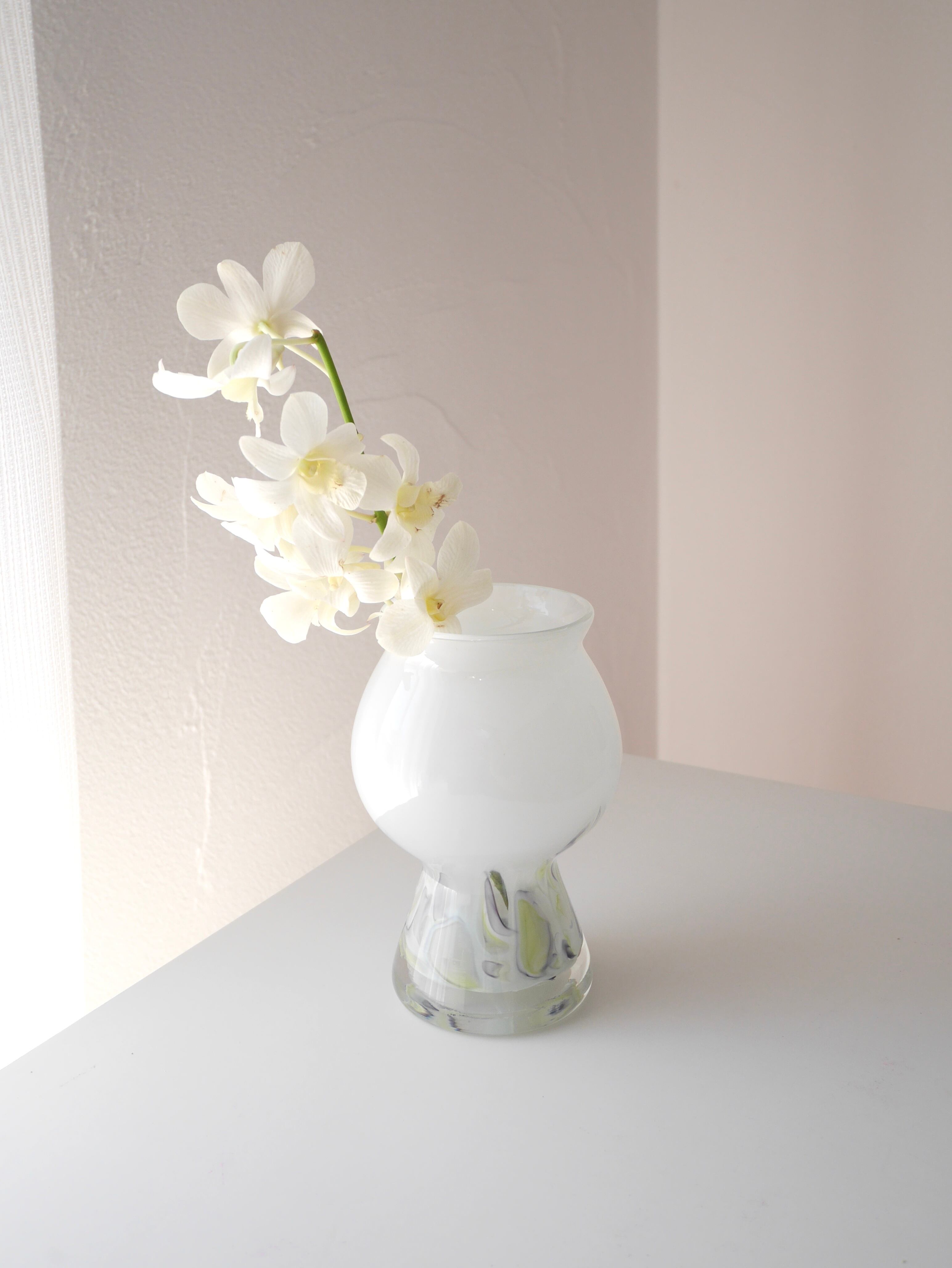 優しいホワイトカラーと、水彩画のようなパープルの色付け模様が魅力的。