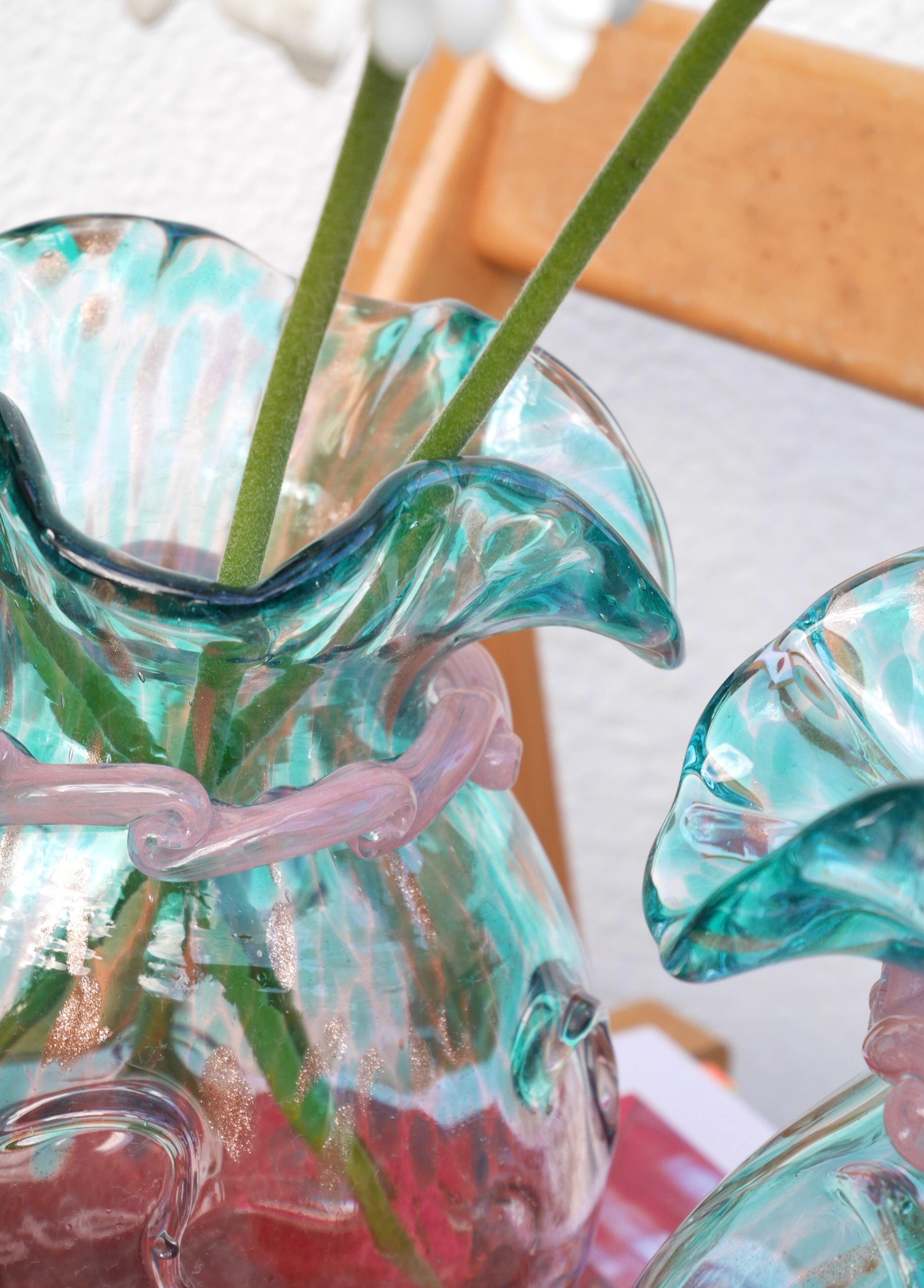 クリアガラスとブルーのグラデーション、バブルのような気泡が装飾されたなニュアンスカラー花瓶。